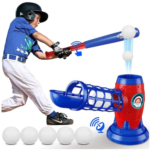 Este conjunto de equipamentos de treinamento de beisebol juvenil é ideal para meninos e meninas que desejam melhorar suas habilidades de rebatidas. Com o taco de beisebol extensível, feito de material ABS de alta qualidade, as crianças podem praticar suas habilidades motoras finas e coordenação olho mão. O lançador de beisebol pop up automático remoto é controlado por um botão no taco de beisebol, permitindo que a bola seja exibida automaticamente após 3 segundos. O lançador pode conter até 5 bolas de beisebol, permitindo que as crianças pratiquem sem a necessidade de encher a máquina após cada saque. Este conjunto é perfeito como um brinquedo esportivo ao ar livre para crianças, e também é uma ótima opção de presente para aniversários, Halloween e Natal para meninos e meninas entre 5 e 12 anos. Requer 2 pilhas AA não incluídas.