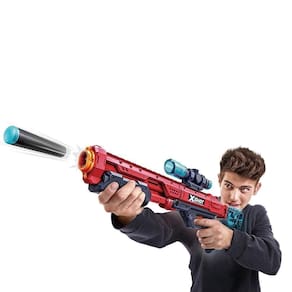 Ideal para quem leva as batalhas a sério, esse lançador da linha Excel combina visual , mira destacável e disparos potentes com alcance de até 27 metros! Com sistema de pump-action e apoio ergonômico para maior estabilidade, o Hawk Eye permite tiros certeiros em qualquer direção. Possui armazenamento traseiro para 4 extras e vem com 16 com tecnologia Air , que garantem mais velocidade, alcance e precisão nos disparos. Pronto para mirar, carregar e vencer? Então escolha o X-Shot Hawk Eye Red e domine o campo de batalha com estilo e performance.