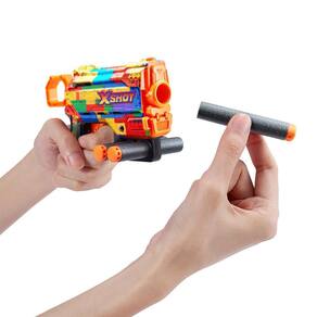 O Lançador X-Shot Skins Menace tem potência suficiente para enfrentar alvos a 27m de distância! Fácil de recarregar, vem com armazenamento de dardo inferior para uma recarga rápida no meio da batalha. O lançador X-Shot Skins Menace vem em 7 skins com estampas exclusivas e de alta qualidade para selecionar e colecionar e vem com 8 dardos de espuma. O lançador é compatível com os principais dardos do mercado. A brincadeira será muito mais divertida com o X-Shot Menace Skins!
