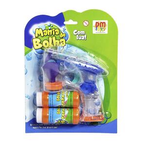 Lançador de bolha de sabão a pilha transparente que ao lançar a bolha acende luzes. O frasco é acoplado no lançador. INFORMAÇÕES ADICIONAIS: INMETRO CERTIFICADO: BR-024/20 EAN: 7899205953456 VALIDADE: INDETERMINADA INDICAÇÃO: MAIORES DE 3 ANOS ALIMENTAÇÃO: 2 PILHAS AA (NÃO INCLUSAS) TAMANHO APROXIMADO DA LANÇADOR: 16,5X15CM PESO APROXIMADO: 320G TIPO DE PRODUTO: LANÇA BOLHA DE SABÃO MANIA DE BOLHA + 2 REFIS COM LUZ NA CARTELA CORES: TRANSPARENTE COM DETALHES COLORIDOS COMPOSIÇÃO: PLASTICO E COMPONENTES ELETRÔNICOS