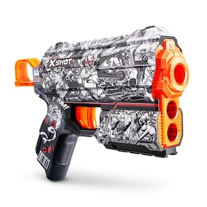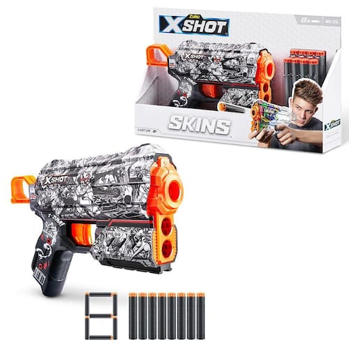 Vá direto para a batalha com a capacidade de dardo único do lançador X-Shot Skins Flux e armazenamento frontal de 2 dardos. O Flux eliminará seus inimigos e pode atingir alvos a até 27m de distância. O X-Shot Skins Flux vem em 6 skins com estampas exclusivas e de alta qualidade para selecionar e colecionar e vem com 8 dardos de espuma. A brincadeira será muito mais divertida com o X-Shot Flux Skins!