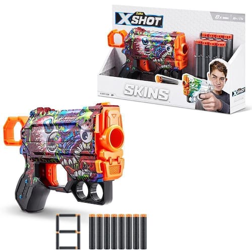 O Lançador X-Shot Skins Menace tem potência suficiente para enfrentar alvos a 27m de distância Fácil de recarregar, vem com armazenamento de dardo inferior para uma recarga rápida no meio da batalha. O lançador X-Shot Skins Menace vem em 7 skins com estampas exclusivas e de alta qualidade para selecionar e colecionar e vem com 8 dardos de espuma. O lançador é compatível com os principais dardos do mercado. A brincadeira será muito mais divertida com o X-Shot Menace Skins Ean: 7897500556204