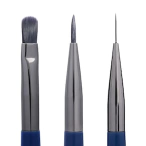 Os pincéis Bluwe foram criados para proporcionar melhor aplicação dos produtos e um acabamento uniforme e profissional. Com design exclusivo e cerdas duráveis, criamos um Kit com 3 modelos para te acompanhar em todas as etapas. MODO DE USO B1: Para selagem de fibra, aplicação de Capa Base e aplicação do ponto de tensão. B2: Para nivelamento do ponto de tensão. B3: Ideal para contorno da esmaltação em gel e nail art. Marca: Bluwe