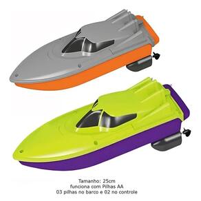 funciona na agua de piscina e lago com aguas calmas Funciona 03 Pilhas AA não inclusas Controle funciona com 02 pilhas AA (não inclusa) Tamanho: 25cm Largura: 9cm Altura: 9cm Velocidade média: 20kmh Controlador de velocidade em escala real hélices de alto toques Contem na caixa: 01 barco 01 controle remoto Alcance em media 15 a 20 metros de distancia no controle total, podendo ir mais longe. Idade: 6+ Selo Inmetro: CE-BRIocp00190 Garantia contra defeitos de fabricação 90 dias Envio com procedência garantida Envio em menos de 24 horas.