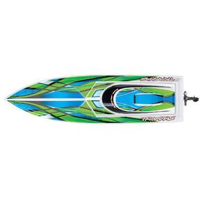 Especificações: Tipo de casco: "V" modificado de alto desempenho Ângulo de elevação morto: 20 graus Comprimento do casco: 23,75 polegadas (603 mm) Feixe: 5,75 polegadas (146 mm) Peso: 28 onças (0,793 kg) Calado: 3,25 polegadas (83 mm) Tipo de controle de velocidade: ESC à prova d'água Nautica Carregador: carregador rápido DC de 4 ampères Bateria: Bateria Traxxas de 6 células NiMH com iD Motor (elétrico): 540 Stinger refrigerado a água (20 voltas) Sistema de transmissão: transmissão direta Outdrive: perfuração de superfície ajustável Sistema de rádio: Traxxas TQ 2,4 GHz (3 canais)