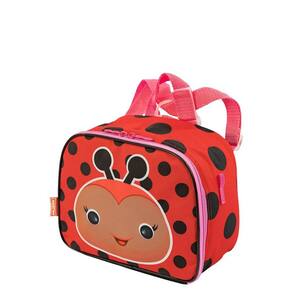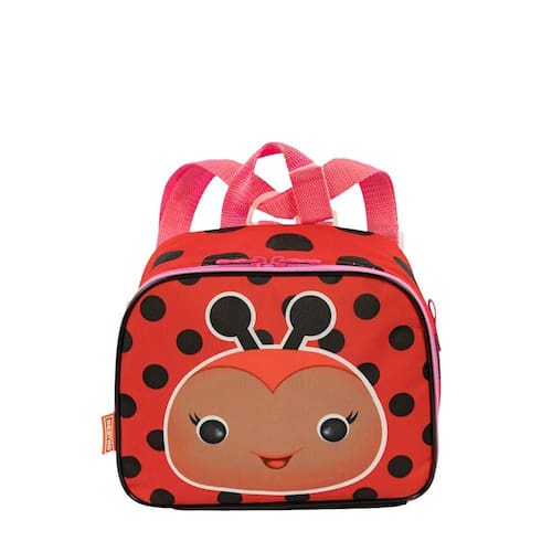 A lancheira com alças 2 em 1 Sestini Kids Joaninha pode ir pra escola com a sua filha de várias formas: com a ajuda dos ganhos, a tira é colocada na transversal ou nas costas, como preferir. Tem ainda a alça carona, para acoplar no carrinho da mochila e alça de mão. Nas costas, um espaço para identificador e o compartimento interno é fácil de limpar, com revestimento resistente a líquidos e acompanha potinho e garrafinha.