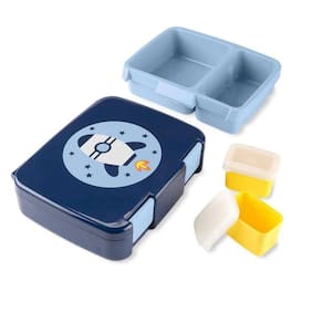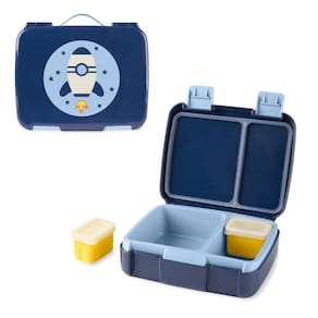 Uma lancheira que não vaza, e de fácil limpeza, afinal sua bandeja é removível e pode ser colocada na parte superior da lava louças, praticidade para toda a família! O Bento Box Skip Hop é a lancheira perfeita para seu filho levar a escola ou passeios com seu design moderno ela possui estampa de Foguete.