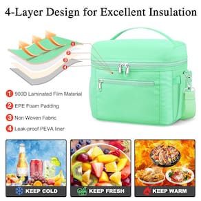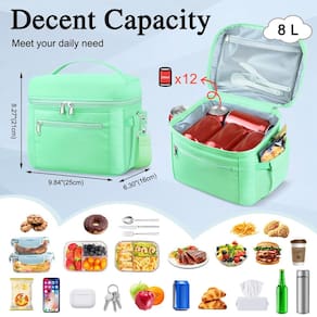 As sacolas reutilizáveis apresentam um design moderno ótimo para mulheres, homens e adultos para trazer almoço, bebidas, lanches, garrafa de água, guardanapos, condimentos, utensílios, molhos para o trabalho, escritório, piqueniques, caminhadas, praia, escritório, academia e muito mais! - Isolada e congelada com materiais premium: esta lancheira reutilizável é feita com revestimento PU de alta qualidade e um forro isolado PEVA de 5 mm de espessura. Sua aparência elegante e elegante mantém os alimentos quentes ou frescos por horas, garantindo que suas refeições e bebidas permaneçam frescas e deliciosas, prontas para desfrutar. - Capacidade espaçosa e prática: Dimensões – C 9,84" (25 cm) x L 6,30" (16 cm) x A 8,27" (21 cm). Esta lancheira tem uma capacidade de 8,5 litros e pode armazenar até 12 latas (330 ml), oferecendo amplo espaço para lancheiras, sanduíches, bebidas, frutas e muito mais – perfeita para suas necessidades durante todo o dia. Verifique as dimensões antes de fazer o pedido para garantir que atenda às suas necessidades. - Design durável com vários bolsos: possui um compartimento principal com um zíper duplo resistente, um bolso interno de malha para utensílios, um bolso frontal com zíper para pequenos itens essenciais e dois bolsos laterais - um elástico e um de malha - para guardar garrafas, água ou um guarda-chuva com segurança. Este design atencioso garante que tudo tenha o seu lugar. - Resistente a vazamentos e à prova d'água: Feita com forro macio durável e costuras soldadas a quente para uso duradouro. O exterior de nylon impermeável e resistente a rasgos é leve e fácil de limpar — basta limpar com um pano úmido. Esta lancheira mantém os alimentos seguros e sem vazamentos, mesmo com água ou gelo. - Alça de ombro ajustável e fácil de transportar: esta lancheira isolada possui uma alça resistente e uma alça de ombro removível e ajustável para facilitar o transporte. Seu design elegante e leve é adequado para homens e mulheres, o que a torna ideal para trabalho, escritório, piqueniques, acampamento e muito mais. Se você tiver alguma dúvida, sinta-se à vontade para entrar em contato conosco.
