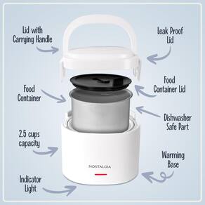 Nostalgia Lancheira elétrica portátil de 590 ml – Tamanho de viagem com capacidade de 2,5 xícaras para sopa, pimenta e sobras – tampa selada de silicone à prova de vazamento, alça de transporte - Reinvente sua rotina de almoço: Você está entediado de comer o mesmo sanduíche antigo para o almoço todos os dias? Agora você pode renovar completamente sua rotina de almoço preparando todos os tipos de pratos deliciosos como sopas, macarrão, refogados e muito mais para aquecer alimentos quentes durante a hora do almoço, mantendo você abastecido para o seu dia de trabalho. - AQUECIMENTO FÁCIL E COMER SABOROSA: com esta lancheira portátil com autoaquecimento, embale uma refeição e ligue-a algumas horas antes da hora da refeição para que esteja pronta quando você estiver com fome. Evite o incômodo de cozinhar o almoço no local preparando com antecedência para que quando seu estômago começar a resmungar, você possa simplesmente pegar sua lancheira e desfrutar de uma refeição quente. - Grandes apetitos para levar: Encha o recipiente de alimentos interior de aço inoxidável com até 2,5 xícaras (567 g) de sopas, pimenta, macarrão, refeições leves e sobras para uma refeição fácil e portátil que você pode levar com você para o trabalho, viagens, recreação ao ar livre e muito mais. - PORTABILIDADE À PROVA DE VAZAMENTO: O design de tampa dupla com grampos de bloqueio mantém seu almoço seguro e evita derramamentos e vazamentos, especialmente de refeições mais líquidas, como sopas ou chili. Transporte despreocupado! Leve o aquecedor de alimentos para o seu carro e para o escritório sem a preocupação de fazer bagunça. A alça de transporte dobrável e o cabo de alimentação destacável facilitam ainda mais a portabilidade. - FÁCIL DE LIMPAR: O recipiente de alimentos removível é fácil de limpar e pode ser lavado na lava-louças, facilitando o uso diário para sua rotina de refeições e permitindo um uso duradouro. Gaste menos tempo se preocupando com pratos e organizando confusões de recipientes usando esta lancheira como seu recipiente de almoço diário!