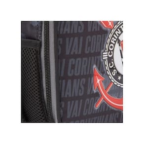Características / Composição - Puxadores Personalizados: Puxadores em metal pintado com um design exclusivo. - Bolso Lateral: Ideal para garrafas de água ou itens de fácil acesso. - Técnica Frontal: Poliéster estampado com PVC Patch, destacando o brasão do Corinthians. - Alça de Mão e Alças Ajustáveis: Para facilitar o transporte e adaptar ao usuário. - Forro Térmico: Em PEVA, material que ajuda a manter a temperatura dos alimentos.