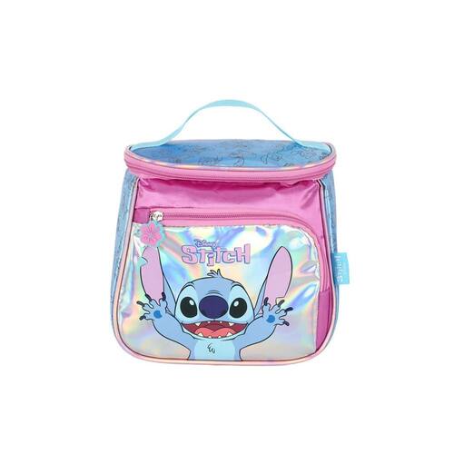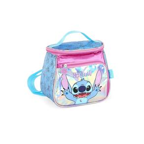 Lancheira Stitch Material: Poliéster de alta qualidade Isolamento térmico para manter os alimentos frescos Compartimento principal espaçoso Alças ajustáveis para maior conforto Fácil de limpar