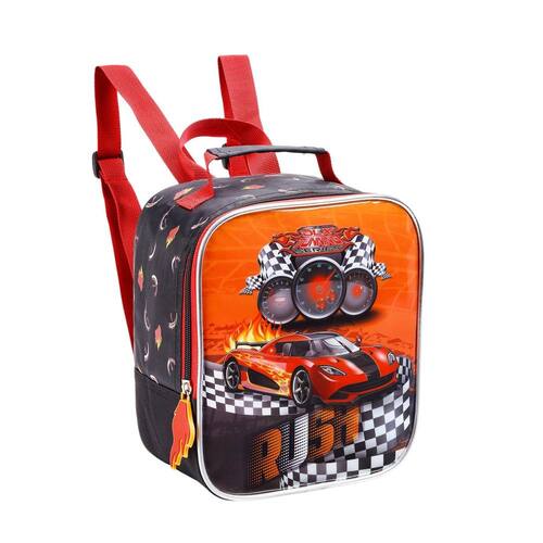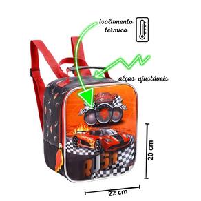 Lancheiratérmica carro Produzido em poliéster Possui alças de costas Material interno térmico Ziperes com puxadores personalizados Estampa estilizada Não acompanha potinho e garrafinha Dimensões: 22 x 20 x 8cm alt x larg x prof ;