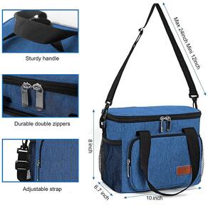 Nossa lancheira oferecerá a você transporte confortável e grande capacidade, é uma opção de presente ideal para homens. Lancheira justa e fresca é conveniente para sua vida diária, será sua bolsa de piquenique perfeita para atividades ao ar livre. Tabela de tamanhos: 25,4 x 17 x 20,3 cm/30 x 23 x 23 cm Material: Forro de PEVA, poliéster Oxford 600D premium, espuma de EPE espessa Grande capacidade: cabe na maioria das lancheiras e recipientes, maior do que a sacola no mercado, a capacidade máxima é de 8,5 L ou 15 L Fácil de usar: use um design leve e portátil, alça de ombro removível antiderrapante, alça acolchoada e zíperes duplos suaves Uso em várias cenas: coloque um pouco de gelo quando você sair, sua comida ficará congelada e fresca, se for uma refeição quente, Coloque diretamente na sacola, sua lancheira insultada manterá aquecida. Nossa lancheira à prova de vazamento é uma escolha versátil para homens e mulheres levarem alimentos e bebidas para o trabalho, escritório, piqueniques, praia, acampamento, viagens ou qualquer atividade ao ar livre Preservação a longo prazo: o forro interno macio também é fácil de manter e limpar, um pano úmido pode limpar a sujeira, por favor, seque a bolsa para o próximo uso Garantia sem preocupações: se qualquer cliente não estiver 100% SATISFEITO com sua compra, teremos prazer em oferecer um reembolso sem complicações - ?Isolamento e à prova de vazamento?-- A lancheira isolada com forro de PEVA extra grosso à prova d'água, tecido Oxford ecológico 600D premium e material de isolamento de espuma EPE de 4 mm integrado retém o frio ou o calor, pode manter os alimentos frios/quentes/frescos por mais de 6 horas. A lancheira térmica soldada a quente emenda protege contra vazamentos e é fácil de limpar com um pano úmido. - ?Grande capacidade? -- A lancheira reutilizável com compartimento grande com zíper duplo tem 25 cm C x 16 cm L x 20 cm A. A capacidade máxima é de 22 cm, grande o suficiente para caber 12 latas de 330 ml de coca, design quadrado aberto que pode facilmente armazenar seus sanduíches, salada, bebidas e frutas nesta lancheira de grande capacidade. Serve para todas as suas necessidades de almoço o dia todo e é perfeito para levar alimentos e lanches com suas atividades ao ar livre. - ?Leve e portátil? -- A lancheira leve com alça acolchoada espessa e material antiderrapante na parte superior garante um transporte confortável, e a alça de ombro removível e ajustável é fácil de carregar no ombro ou na mão. O design simples e moderno é conveniente para ser utilizado como sua lancheira, bolsa reutilizável, bolsa de piquenique, bolsa térmica de praia, sacola ou sacola de compras. - ?Vários compartimentos?-- A lancheira masculina Femuar vem com 1 bolso frontal com zíper, 2 bolsos de malha e 1 bolso interno de malha, oferece a você muito espaço para embalar todas as suas comidas e lanches, embalar suas chaves, cartões, bolsa, celular, carregadores de telefone, guardanapos, utensílios ou outras pequenas coisas que você precisa diariamente. - ?Multiuso e conveniente? – Lancheira isolada para homens e mulheres para embalar alimentos e bebidas para o trabalho, escritório, piqueniques, praia, viagens rodoviárias, acampamento, caminhadas, churrascos, viagens ou qualquer atividade ao ar livre. O design unissex da nossa lancheira é perfeito para adultos e adolescentes como presentes de Dia das Mães e Dia dos Pais, Ação de Graças e Natal (a idade mínima para uso de nossos produtos é acima de 12 anos).