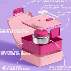 Nossas lancheiras infantis para escola apresentam uma grande porção de 1,7 g para embalar almoços escolares e selar individualmente para manter os alimentos separados. Classificação etária recomendada: 3+ anos de idade.