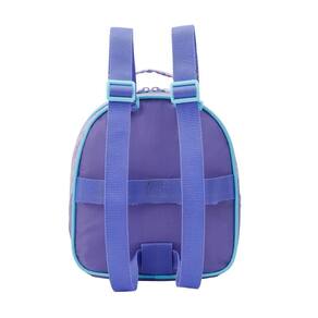 Ela conta com frente estampada em PVC + glitter localizado, fechamento em zíper com puxadores personalizados, alça de mão em poliéster com nylon reforçado e alças de costas ajustáveis. Além disso, possui alças para encaixe nas hastes das mochilas de rodinhas, garantindo maior facilidade no transporte.