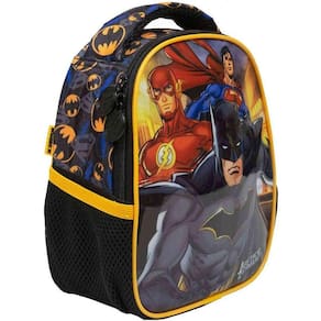 Lancheira térmica infantil Liga Da Justiça. Lancheira qualidade confeccionada em poliéster, fechamento em zípper. Lancheira com alça de mão, alça tiracolo, revestimento interno térmico e etiqueta de identificação.