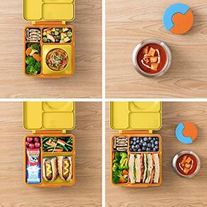 Lancheira à prova de vazamentos para crianças que armazena alimentos quentes e frios juntos para que os pais possam embalar lanches escolares mais saudáveis.Omiebox é diferente porque possui um pote de comida embutido que mantém o almoço quente por 4 horas. Os compartimentos bento são de parede dupla, isolados a ar e à prova de vazamentos, para manter frutas e vegetais crocantes e frescos. Você não precisará de uma lancheira separada porque a omiebox vem com uma alça, tornando-a o único recipiente que você precisa para armazenar e transportar alimentos de e para a escola.