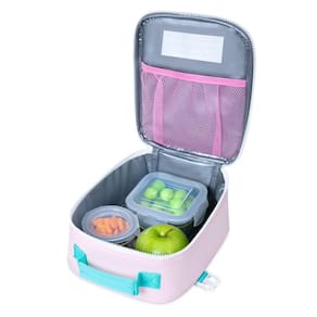 Interior organizado: com bolso interno de malha e compartimento aberto, esta lancheira infantil pode acomodar vários tamanhos de recipientes.