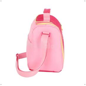 Com alça transversal ajustável e alça de mão reforçada, oferece versatilidade para o transporte, seja no ombro ou na mão. Seu design alegre e colorido combina estilo e funcionalidade, tornando-a ideal para acompanhar as crianças no dia a dia.