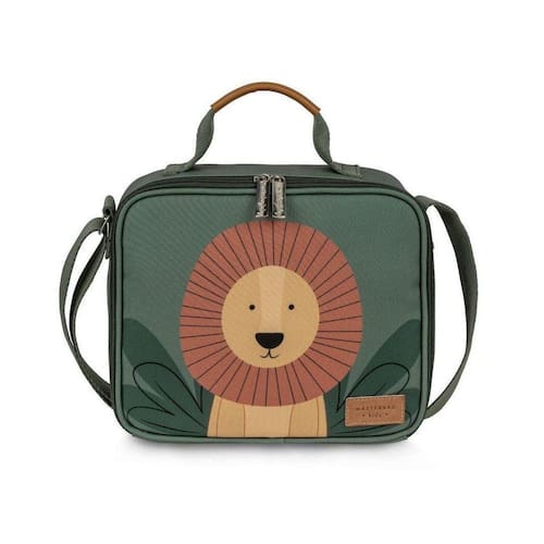 Características: - Lancheira térmica em material resistente na cor verde com estampa Leão - 1 alça de mão e 1 alça tiracolo regulável - Metais na cor prata - Abertura individual com fechamento em zíper duplo - Amplo espaço interno com 1 compartimento - Forro emborrachado para facilitar a higienização