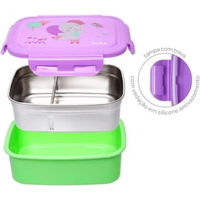 Lancheira Marmitinha Bento Box 600ml com Divisória Tampa Pote Infantil Escola Passeios Buba - Elefante