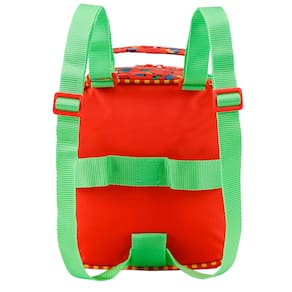 Produzida em poliéster resistente e estampado Painel frontal PVC patch Compartimento com revestimento em material que ajuda a manter o frescor dos alimentos por mais tempo Zíper com puxadores personalizados e piping bicolor forrado Alças reguláveis com faixa para acoplar o produto na haste da mala de rodinhas
