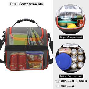 O máximo desempenho atende à máxima conveniência. Esta lancheira térmica de luxo resistente de dois andares tem o tamanho certo para almoço ou viagem. É bem isolada e contém dois compartimentos, um bolso frontal com zíper, dois bolsos laterais de malha com alça extra ajustável e uma bolsa traseira de fecho aderente e porta-cartões, bem como uma alça de ombro ajustável. Feita de poliéster resistente com um interior de folha térmica, é ótima para transportar qualquer coisa que você precise manter no lado mais frio ou quente. Se você estiver embalando uma lancheira de adulto para sua refeição de trabalho durante a semana, para uma viagem de piquenique ou simplesmente para levar itens frios do supermercado para o freezer em casa, achamos que esses dois deques são perfeitos para uma infinidade de propósitos. Basta colocá-la sobre o ombro e a cabeça para a colina gramada mais próxima! Os dois compartimentos mantêm os itens quentes e frios separados, enquanto o forro à prova de vazamento e o exterior são fáceis de limpar. A alça de ombro transversal ajustável com uma almofada de ombro oferece conforto durante o transporte. Dois compartimentos separados Esta lancheira oferece diferentes maneiras de embalar sua comida. Seus 2 compartimentos isolados permitem que você se mantenha organizado e separe alimentos/bebidas quentes e frias. Perfeito para adultos que só precisam embalar 1+ refeição Isolamento Forro com material de folha de alumínio espesso, interior acolchoado com isolamento de espuma espessa para manter os alimentos frios/quentes/frescos por horas, Design durável e elegante O estilo MIER adiciona um toque à lancheira unissex para marcar sua estatura dentro e fora de serviço. Feito de poliéster 300-denier com um revestimento de PU para ajudar a garantir o uso duradouro Material exterior: poliéster durável Forro de isolamento: forro de alumínio grosso de grau alimentício Peso: 600 g Comprimento das alças de ombro: 68-132 cm Altura do ombro: 38-71 cm O tamanho interno da seção superior é 25 cm C x 19 cm L x 11 cm A O tamanho interior da seção inferior é 25 cm C x 19 cm L x 14 cm A - Bolsa de almoço com 2 compartimentos ---- Esta lancheira oferece diferentes maneiras de embalar sua comida. A seção superior "seca" apresenta uma abertura em U e puxadores de zíper duplo para fácil acesso, ideal para itens que não vazam, como frutas, lanches ou tortas. A seção "fria" com fecho de zíper duplo inferior é isolada sem vazamento com forro de folha macia, perfeita para bebidas, água, suco e similares - Bolsa térmica térmica ---- Espuma de isolamento térmico espessa e forro de alumínio de grau alimentício trabalham juntos para manter o conteúdo frio/quente/fresco por horas; fácil de limpar. O tamanho interno da seção superior é 25 cm C x 19 cm L x 11 cm A, o tamanho interior da seção inferior é 25 cm C x 19 cm L x 14 cm A - Refrigerador de alta confiabilidade ---- um bolso frontal com zíper para guardar utensílios e guardanapos, dois bolsos laterais de malha com alças extra ajustáveis para garrafas de bebidas e latas de refrigerante, uma bolsa traseira com fecho de fecho aderente e um porta-cartões transparente, dando a você acesso fácil a tudo o que você precisa para um almoço perfeito - Confortável de carregar ---- A alça de ombro removível e ajustável para facilitar o transporte. O comprimento ajustável (MIN: 68.6 cm, MAX: 132.1 cm) serve para a maioria das pessoas ao redor do ombro na queda de um chapéu para um transporte sem as mãos. A alça de silicone MIER com design especial 2.0 garante que você tenha uma aderência confortável - Bolsa de almoço grande versátil ---- Grande capacidade com espaço suficiente, mas não muito volumosa e 7 cores para suas diferentes necessidades. Cooler perfeito para piquenique ao ar livre, churrascos, acampamento, praia, esportes, caminhadas, viagens, trabalho, etc. Ideal para homens e mulheres. Um bom presente para familiares e amigos - Pacote: 1 lancheira e 1 alça de ombro removível