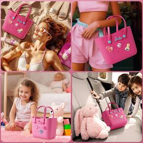 Lancheira Bento MINISO Barbie Sunlight Shining Series — Linda bolsa portátil de EVA para meninas, presente perfeito para lancheira feminina. Bolsa de praia multifuncional infantil — Lancheira leve para viajar e brincar com lindos pingentes da Barbie na parte externa. O design geral da bolsa é fofo e interessante, perfeito para meninas. Feita de material EVA, resistente e durável, em formato de bolsa tridimensional, de grande capacidade, pode atender às suas necessidades diárias Design deslizante — Feito de material EVA: leve, impermeável e fácil de limpar. Nossa lancheira mede 9,2 “L x 6,6" H. Muito espaçosa para acomodar recipientes de refeições, lanches, talheres e até mesmo algumas frutas sem se sentir apertada. O material resistente a manchas garante que seja fácil de limpar e que derramamentos acidentais não deixem marcas duradouras. Fácil de usar: a sacola Barbie à prova d'água à prova de areia pode conter protetor solar, lanches, garrafas de água, óculos de sol e outros itens, por isso projetamos nossa pequena bolsa de praia para ser à prova d'água e lavável à prova de areia. Fácil de cuidar, basta enxaguar no final do dia e ficará como novo - Multifuncional: é uma combinação perfeita de moda e praticidade! Embora seja perfeita para almoços de escritório, esta bolsa chique não se limita ao local de trabalho. E como uma bolsa casual e sem frescuras para o dia a dia ou até mesmo uma bolsa de maquiagem. Adequado para várias ocasiões, como trabalho, viagens, praia, piqueniques, festas, escritório e atividades ao ar livre. Tão fofa, pode ser usada como bolsa de praia, bolsa de piscina, sacola de compras para meninas, lancheira para filha, etc. Presente perfeito: esta bolsa Barbie fofa e prática é um presente atencioso que combina estilo único, durabilidade e versatilidade. Crie uma bolsa multiuso à prova d'água e resistente à areia que se adapte a vários cenários de uso, tornando-a uma companheira confiável e um presente perfeito. Design exclusivo: o design do orifício respirável pode ajudar a secar os itens úmidos na minibolsa de borracha, garantindo que vários itens estejam limpos e frescos