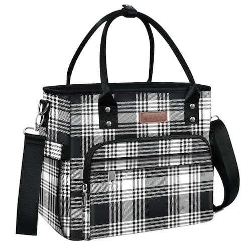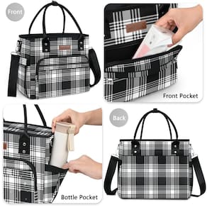 Este organizador térmico de lanches tem três maneiras de carregar como uma bolsa de mão, bolsa de ombro, sacola. Com muitos bolsos, suas chaves, frutas, lanches, refeição para 2 pessoas, garrafa de água pode ser armazenada nesta lancheira.