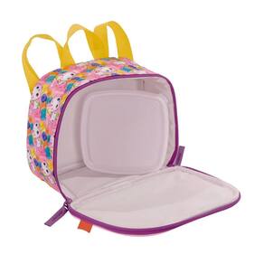 A Lancheira Pequena Gabby Meow Colorido da Sestini é perfeita para fazer parte da turma da Gabby até mesmo na hora do recreio. Com um design encantador, essa lancheira é repleta de gatinhos personagens da série. Além disso, possui alça ajustável de costas, alça de mão e identificador, proporcionando maior conforto e praticidade no transporte.