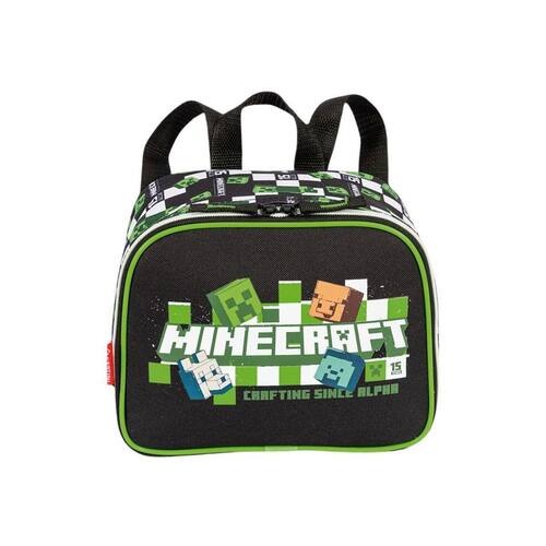É hora de embarcar em um universo cheio de boas aventuras com a lancheira oficial do Minecraft Os personagens mais famosos do jogo que dominou o mundo estão estampados em todo o tecido, enquanto as alças de costas e de mão facilitam a mobilidade dos pequenos exploradores. Além disso, conta com um interior todo revestido em material resistente à líquido, fácil e prático para limpar.Produto SESTINI certificado pelo INMETRO Registro 003954/2013- OCP - 0061. Altura:18 cm Largura:22 cm Profundidade:11 cm Peso:0,2 kg Capacidade Total:4 L Marca: Não Informado