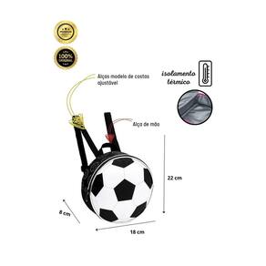 Confeccionada em Poliéster Isolamento térmico Alça de mão e de costas Design exclusivo Puxadores personalizados Fechamento em zíper Medidas aproximadas: Altura: 22 cm Largura: 8 cm Comprimento: 18 cm CUIDADOS: - Guarde em um local seco e arejado evitando locais úmidos. - Evite colocar excesso de peso no produto para não forçar os zíperes e costuras. - Proteja os objetos cortantes e/ou pontiagudos evitando o contato direto com o produto. - Evitar altas temperaturas. - Cores claras poderão manchar quando em contato com outros objetos ou roupas de cores pigmentadas.