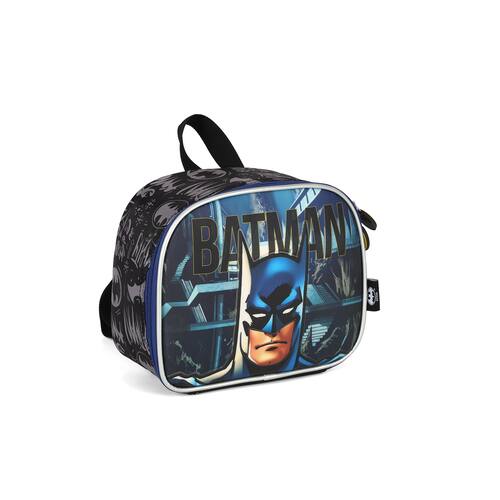 Marca: Luxcel (Licenciado Oficialmente DC Comics/Batman) Personagem: Batman (Cavaleiro das Trevas) Funcionalidade: Térmica (possui revestimento interno que auxilia na conservação da temperatura). Design: Estampa frontal do rosto do Batman com o logo em destaque. Formato Box: Estrutura mais quadrada, ideal para acomodar potes e marmitas de forma estável. Praticidade: Possui alça de mão superior e alça ajustável para ser usada na transversal ou acoplada à alça do carrinho da mochila (se for o caso). Detalhes: Estampa lateral em preto e cinza com logos e símbolos do Batman. Material: Confeccionada em Poliéster e material térmico de alta qualidade. Cor: Predominantemente Preto, Azul e Cinza.