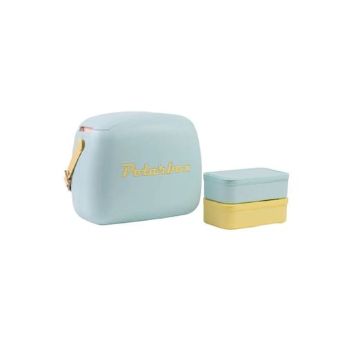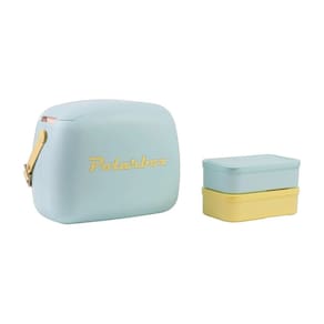 Lancheira Térmica Com Marmita 6 Litros Retrô - Azul Celeste Alça Amarela