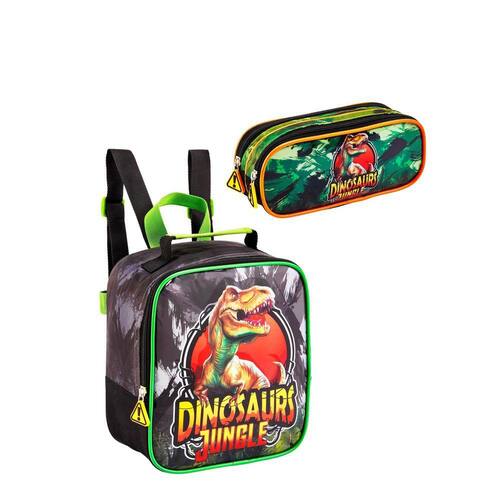 O Kit Escolar Dinossauro Rex Lancheira Térmica + Estojo Duplo é perfeito para os pequenos fãs de dinossauros que querem levar seu lanche para a escola de forma divertida e prática.
