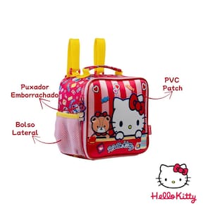A lancheira perfeita para deixar a hora do lanche ainda mais divertida! Com estampa fofa da Hello Kitty, acabamento delicado e forro térmico que conserva a temperatura dos alimentos por mais tempo. Possui alça de mão, alça carona para acoplar à mochila de rodinhas e alças de costas ajustáveis. Ideal para meninas que amam praticidade com muito estilo!