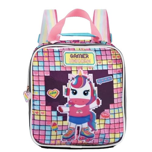 Lancheira Térmica Escolar Infantil Unicórnio Gamer Meninas Cor: Lilás Leve diversão e praticidade para a escola com a Lancheira Térmica Escolar Infantil Unicórnio Gamer, perfeita para meninas que adoram estilo e funcionalidade. Com um design encantador de unicórnio inspirado no universo gamer, ela é térmica, mantendo os alimentos frescos e seguros por mais tempo. Possui alça ajustável para carregar no ombro ou nas mãos e é compacta, mas espaçosa o suficiente para acomodar lanches, sucos e acessórios. Ideal para tornar os momentos de refeição ainda mais mágicos e especiais