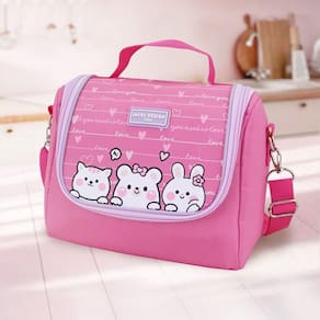 Além de funcional, a lancheira possui estampas divertidas e coloridas da coleção Amiguinhos, tornando a hora do lanche ainda mais alegre para os pequenos.