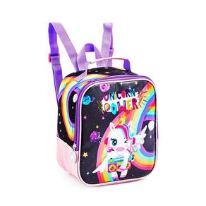 Lancheiratérmica UnicórnioProduzido em poliésterPossui alças de costasMaterial interno térmicoZiperes com puxadores personalizadosEstampa estilizadaNão acompanha potinho e garrafinhaDimensões: 22 x 20 x 8cm alt x larg x prof ;