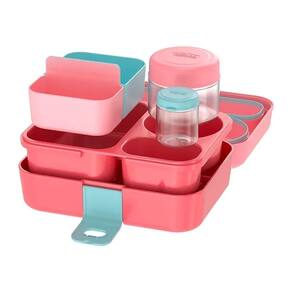 Lancheira thermos com 8 peças bpa free bento box coral a lancheira thermos bento box é uma forma das crianças transportarem seus alimentos de maneira mais segura. Ela é lavável na lava-louças e minimiza o contato dos alimentos com outras superfícies e torna muito mais fácil embalar os lanches e almoços que as crianças vão amar. O design modular reutilizável ajuda a organizar o conteúdo facilmente, a bandeja divisora durável e sem bpa facilita a personalização do almoço sem a preocupação de misturar o conteúdo. Ela também possui um pote de comida de 227g, dois divisores de armazenamento e um pote de condimento de 57g com tampa de encaixe, para que você possa dizer adeus às sacolas plásticas descartáveis. Este conjunto de 8 peças é fácil de limpar e fácil de usar. A lancheira thermos bento box tem o tamanho ideal para ser carregada dentro de uma das lancheiras maleáveis thermos, também disponíveis em nosso estoque. Este produto não se destina a isolar termicamente alimentos ou bebidas, a menos que seja utilizado em conjunto com um pote térmico thermos ou uma garrafa térmica thermos ambos vendidos separadamente . Características: - material: plástico bpa free livre de bisfenol a ; - peso: 715g; - dimensões: 21cm x 8,4cm 8,4xcm. Cada detalhe foi minuciosamente estudado e testado de acordo com os padrões de segurança internacional. A thermos é uma marca alemã fundada em 1904, líder na fabricação de utensílios para armazenamento térmico de bebidas e alimentos, contando com uma experiência de mais de 100 anos e presente em mais de 115 países, sendo a primeira marca a utilizar o sistema de isolamento a vácuo e é mundialmente conhecida pelos seus produtos inovadores, modernos, funcionais e de alto padrão de qualidade para adultos e crianças.