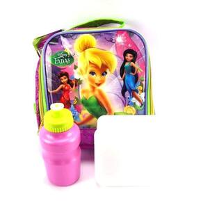 Lancheira Fadas Disney Dermiwil Material em poliéster e PVC Detalhes em dourado Lancheira revestida internamente com material térmico Acompanha Garrafinha e porta-lanche Dimensões: 23,5cm altura 23cm largura 8,5cm profundidade Garantia de 90 dias pelo fabricante