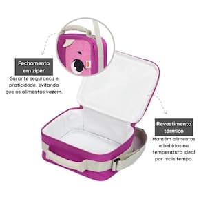 Características Técnicas: Material: poliéster, PEVA Capacidade: 2,5 litros 2 kg Idade recomendada: para crianças de 3 anos ou mais Alça de mão para fácil transporte por onde for Alça de ombro ajustável para conforto e praticidade Fecho em zíper para segurança e facilidade de uso Detalhes dos personagens que estimulam o emocional e criam vínculo Cores contrastantes que aprimoram o desenvolvimento visual Detalhes em 3D que promovem o estímulo tátil Impermeável e com isolamento térmico eficiente