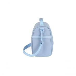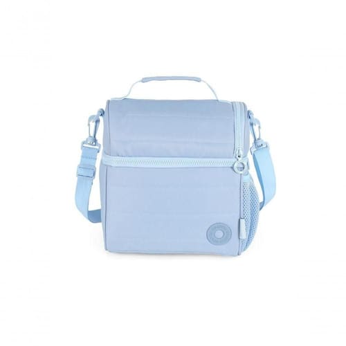 Conta com bolsos laterais livres, alça transversal removível, zíper personalizado e logo em metal, garantindo durabilidade e estilo. Seu grande diferencial é ser modelo duplo, possuindo um compartimento principal e um compartimento menor superior, proporcionando organização prática para lanches, garrafinhas, utensílios e pequenos objetos.