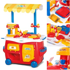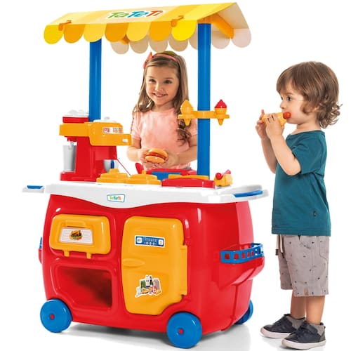 É diversão que não acaba mais para a hora de brincar de fazer comidinhas! Além disso, a Lanchonete tem rodinhas para levar para lá e para cá e uma linda tenda como se fosse um carrinho de lanches de verdade!