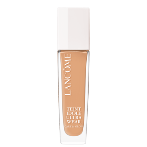 Base líquida com acabamento glow. Lancôme Teint Idôle Wear Care & Glow promove uma cobertura média, hidrata e permite 24 horas sem transferência, para uma make duradoura.
