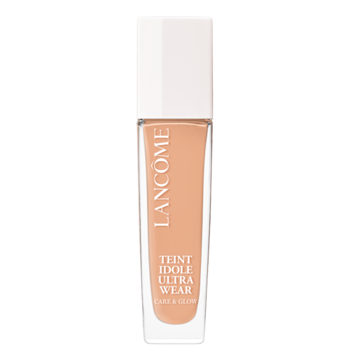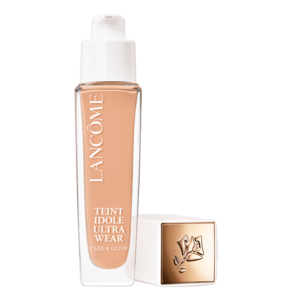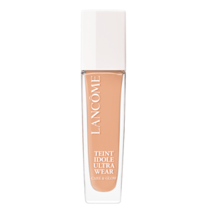 Base líquida com acabamento glow. Lancôme Teint Idôle Wear Care & Glow promove uma cobertura média, hidrata e permite 24 horas sem transferência, para uma make duradoura.