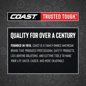 - ÓTICA DE FOCO DE LONGO ALCANCE: veja claramente de perto e de longe. Com a Óptica de Focalização de Longo Alcance, a capacidade de iluminar e escanear objetos de campo próximo se combina com uma luz penetrante que percorre toda a distância. O feixe X-Range Spot ilumina o feixe mais longo da COAST. O feixe Broad View Flood fornece um círculo de luz uniforme e abrangente.
