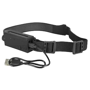 Projetada com um corpo de borracha e uma faixa elástica ajustável, ela é compacta e de peso leve, tornando-a um item fácil de levar para qualquer lugar, além de ser recarregável via cabo USB-C, necessitando de apenas 2 horas para uma carga completa.