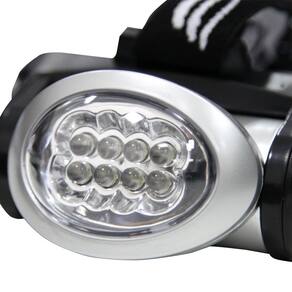 Seu sistema de iluminação utiliza 8 LEDs e alimentação via 3 pilhas AAA não inclusas . Sua lente côncava tem ajuste de ângulo e refletor super-bright que gera maior economia e potência com uma luminosidade mais branca e estável.