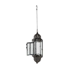 - [LANTERNA DECORATIVA DE NATAL]: Imagine adicionar esta linda lanterna suspensa de estilo vitoriano às suas decorações de Natal internas. Com seu vidro floral gravado, recortes de metal elaborados e uma corrente resistente, é uma peça antiga marcante em qualquer casa, pátio, festa, casamento ou como decoração de festa de Natal. Os painéis de vidro frontais se abrem para facilitar a adição ou remoção da iluminação de vela ou LED de sua escolha, criando um brilho personalizável.